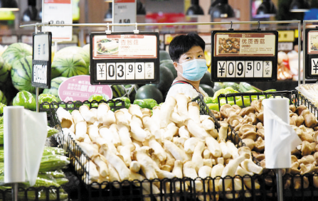 8月10日,消費者在杭州市一家超市選購蔬菜。新華社發(fā)(龍巍 攝)