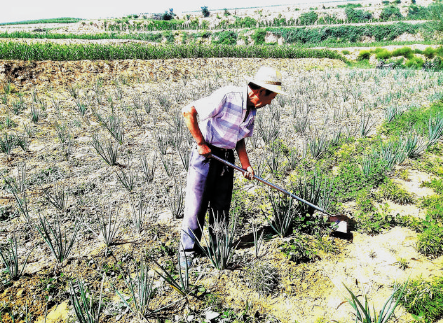8月18日,河曲縣舊縣鄉(xiāng)楊家窊村村民劉官達(dá)正在紅蔥地里鋤草。近年來,該村充分利用產(chǎn)業(yè)扶貧資金扶持發(fā)展特色紅蔥種植,打造“一村一品”主導(dǎo)產(chǎn)業(yè),有效增加農(nóng)民收入,鞏固脫貧成果。賈金理 攝