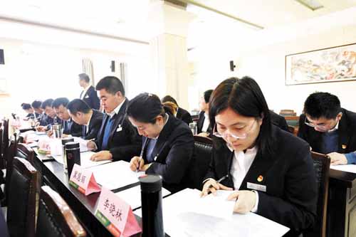 輪訓(xùn)期間,全體與會人員集中觀看《中國共產(chǎn)黨為什么能》《談?wù)勚袊J健方逃]営?xùn)結(jié)束后統(tǒng)一組織了結(jié)業(yè)考試。(楊 煦)