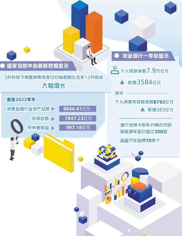 一季度以來,我國消費復蘇按下“快進鍵”,消費信貸投放和惠民力度相較去年不斷加大。農業(yè)銀行今年一季報顯示,擴投資促消費力度持續(xù)加大。在促消費方面,個人貸款余額7.9萬億元,新增3584億元。其中,個人消費類貸款余額8793億元,新增383億元。此外,郵儲銀行在今年5月份開展“讓美好發(fā)生”活動,推出個人額度類消費貸款系列產品“郵享貸”,首次通過郵儲銀行APP完成“郵享貸”首筆支用1萬元以上的用戶,有機會獲得美團外賣代金券等禮品。