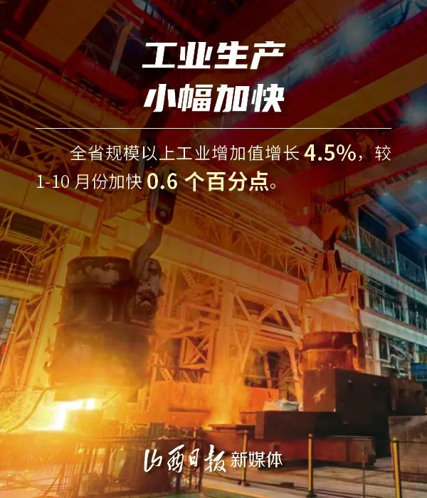 12月20日,省統(tǒng)計(jì)局發(fā)布1至11月份山西經(jīng)濟(jì)運(yùn)行情況。1至11月份,山西扎實(shí)推動(dòng)高質(zhì)量發(fā)展,穩(wěn)增長政策效應(yīng)持續(xù)釋放,主要指標(biāo)增勢(shì)良好,工業(yè)生產(chǎn)小幅加快,消費(fèi)市場(chǎng)穩(wěn)步復(fù)蘇,就業(yè)物價(jià)總體平穩(wěn),經(jīng)濟(jì)運(yùn)行穩(wěn)中向好。一組海報(bào)了解1至11月山西經(jīng)濟(jì)成績單。