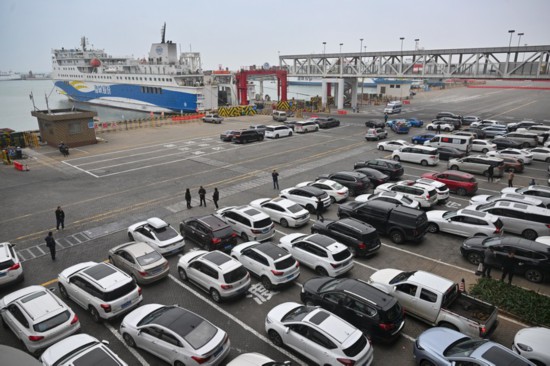 2024年1月26日,車(chē)輛在??谛潞8鄣却谴?。新華社記者 郭程 攝