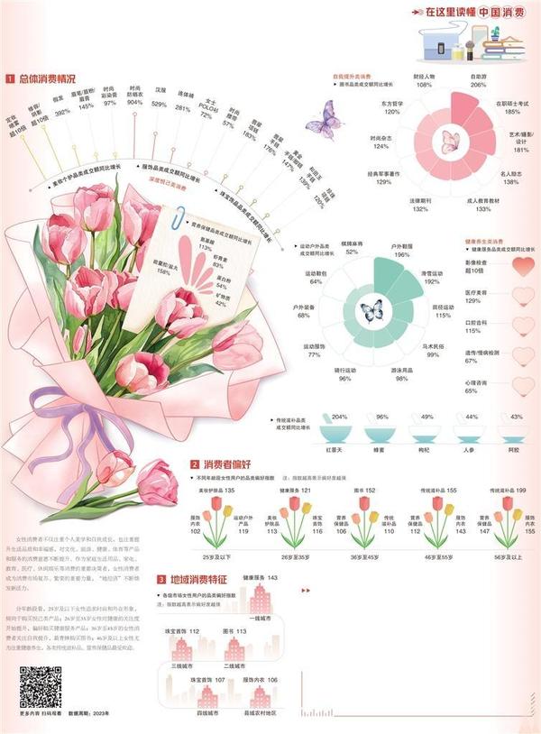 伴隨社會地位和經(jīng)濟實力的不斷提高,女性的消費觀念和習(xí)慣正在發(fā)生轉(zhuǎn)變,她們在扮演好社會賦予的各種角色的同時,愈加認可自我價值,更加關(guān)注“為自己投資”“讓自己快樂”。數(shù)據(jù)顯示,女性群體在文化旅游、運動戶外、醫(yī)療保健等方面的消費占比均有明顯增長,深度悅己、自我提升、健康養(yǎng)生成為她們的生活關(guān)鍵詞。