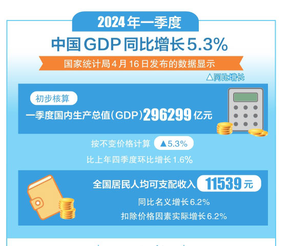 4月16日,中國經(jīng)濟2024年首季報出爐。國內(nèi)生產(chǎn)總值同比增長5.3%,固定資產(chǎn)投資同比增長4.5%,高技術(shù)產(chǎn)業(yè)投資同比增長11.4%……一季度,中國經(jīng)濟增長較快、質(zhì)效向好,實現(xiàn)良好開局。但嚴峻復雜形勢下,有效需求不足、社會預期偏弱等問題仍然存在,還需進一步鞏固和增強經(jīng)濟回升向好態(tài)勢。