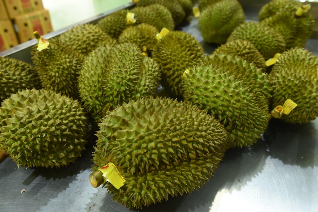 沙西通果園的榴蓮被采摘后,很快被運(yùn)到附近一家加工廠。這里,工人們忙碌地對(duì)新鮮榴蓮進(jìn)行分揀、稱重、打包、裝車。