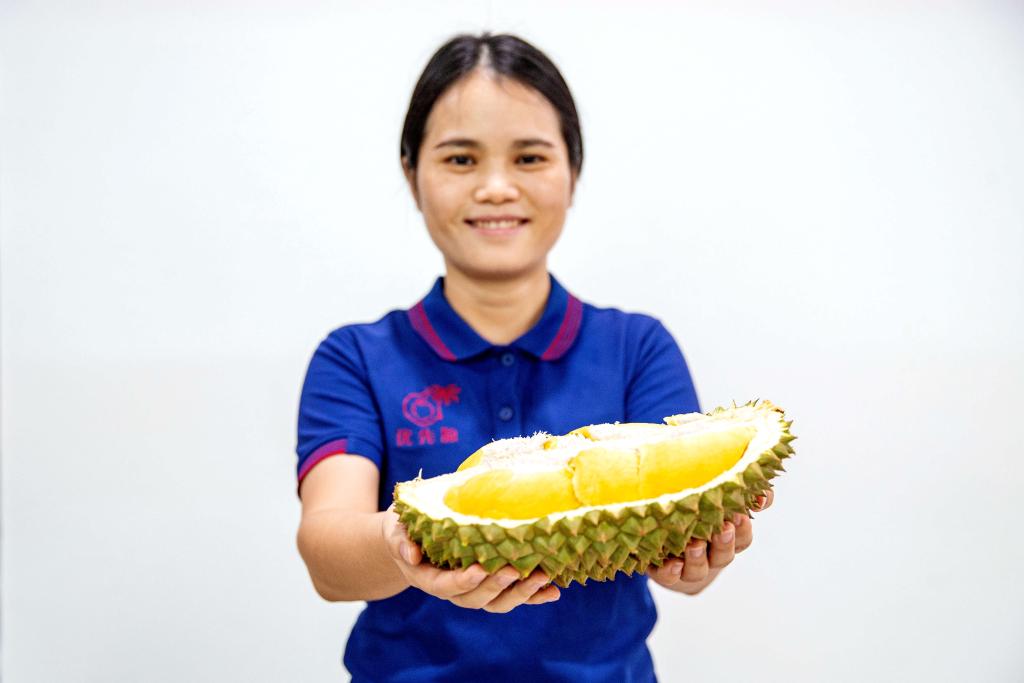 沙西通從事榴蓮生意已有10多年時(shí)間,她的榴蓮種植園有2000多棵榴蓮樹。她說,今年因?yàn)樘鞖飧珊?,榴蓮產(chǎn)量有所減少,但市場(chǎng)需求量較大,行情不錯(cuò)。“我們供應(yīng)多個(gè)榴蓮品種,既有成熟較早的甲侖,也有備受中國消費(fèi)者喜愛的金枕?!?/p>