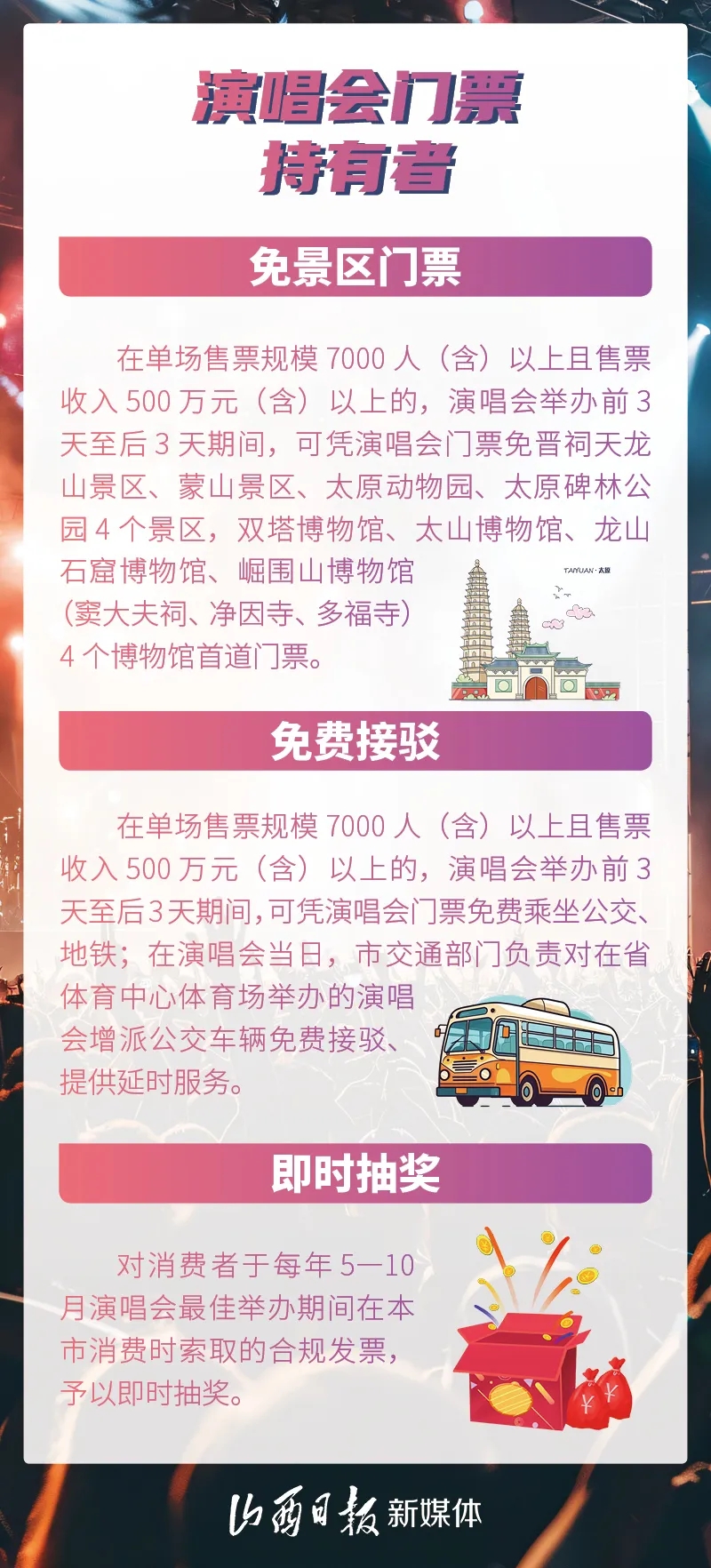 為做大太原市演唱會經(jīng)濟(jì),加快建設(shè)華北地區(qū)重要演藝中心,打造“國內(nèi)外重要文化旅游目的地”,日前,太原市發(fā)展和改革委、市文化和旅游局、市財政局等11個部門聯(lián)合制定出臺《支持演唱會經(jīng)濟(jì)發(fā)展的若干措施(試行)》。