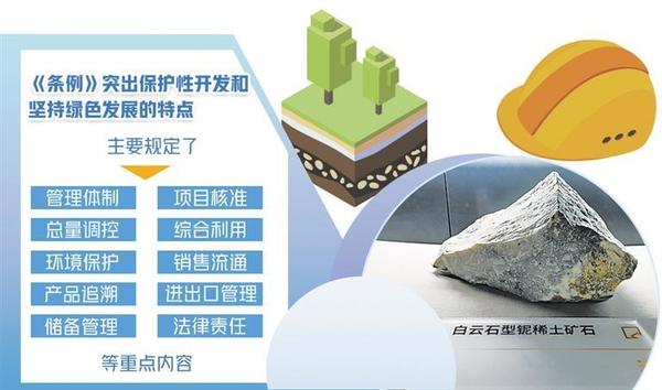 《稀土管理?xiàng)l例》(以下簡(jiǎn)稱《條例》)日前公布,自2024年10月1日起施行?!稐l例》明確,稀土資源屬于國家所有,國家依法加強(qiáng)對(duì)稀土資源的保護(hù),對(duì)稀土資源實(shí)行保護(hù)性開采。同時(shí),鼓勵(lì)和支持稀土產(chǎn)業(yè)新技術(shù)、新工藝、新產(chǎn)品、新材料、新裝備的研發(fā)和應(yīng)用,持續(xù)提升稀土資源開發(fā)利用水平,推動(dòng)稀土產(chǎn)業(yè)高端化、智能化、綠色化發(fā)展。專家認(rèn)為,《條例》首次以行政立法形式規(guī)范稀土資源的開發(fā)利用,主要規(guī)定了管理體制、項(xiàng)目核準(zhǔn)、總量調(diào)控、綜合利用、環(huán)境保護(hù)、銷售流通、產(chǎn)品追溯、進(jìn)出口管理、儲(chǔ)備管理、法律責(zé)任等重點(diǎn)內(nèi)容,突出了保護(hù)性開發(fā)和堅(jiān)持綠色發(fā)展的特點(diǎn),對(duì)推動(dòng)稀土產(chǎn)業(yè)高質(zhì)量發(fā)展具有重大意義。規(guī)范稀土資源開發(fā)利用稀土是現(xiàn)代工業(yè)中不可或缺的重要元素和關(guān)鍵戰(zhàn)略資源。中國有色金屬工業(yè)協(xié)會(huì)黨委書記、會(huì)長(zhǎng)葛紅林表示,稀土被譽(yù)為“工業(yè)維生素”,是高新技術(shù)產(chǎn)業(yè)和國防科技工業(yè)的關(guān)鍵原料,是關(guān)系國家安全和國民經(jīng)濟(jì)命脈的戰(zhàn)略資源,對(duì)推動(dòng)新型工業(yè)化發(fā)展具有不可替代性。中國稀土集團(tuán)黨委書記、董事長(zhǎng)敖宏介紹,稀土是改造提升傳統(tǒng)產(chǎn)業(yè)、發(fā)展戰(zhàn)略性新興產(chǎn)業(yè)和國防科技工業(yè)不可或缺的關(guān)鍵材料。隨著新能源汽車、風(fēng)力發(fā)電、智能制造等戰(zhàn)略性新興產(chǎn)業(yè)和節(jié)能電機(jī)等傳統(tǒng)產(chǎn)業(yè)改造升級(jí),全球稀土需求快速增加。近年來,我國圍繞稀土行業(yè)準(zhǔn)入標(biāo)準(zhǔn)、行業(yè)整合、環(huán)境保護(hù)等方面出臺(tái)了多項(xiàng)政策措施,產(chǎn)業(yè)發(fā)展良好,帶動(dòng)建立起相對(duì)完整的產(chǎn)業(yè)體系,資源儲(chǔ)量、產(chǎn)量、消費(fèi)量、貿(mào)易量均居世界第一位,并持續(xù)加強(qiáng)稀土資源保護(hù)開發(fā)和合理利用,為科技進(jìn)步和經(jīng)濟(jì)社會(huì)發(fā)展作出了突出貢獻(xiàn)。瞄準(zhǔn)新一輪科技革命和產(chǎn)業(yè)變革方向,我國加快稀土供給側(cè)結(jié)構(gòu)性改革,不斷開辟發(fā)展新領(lǐng)域新賽道、塑造發(fā)展新動(dòng)能新優(yōu)勢(shì),產(chǎn)業(yè)鏈不斷完善,產(chǎn)業(yè)規(guī)模不斷擴(kuò)大,產(chǎn)品品種不斷豐富,產(chǎn)品質(zhì)量不斷提高,市場(chǎng)規(guī)模不斷擴(kuò)大,國際影響力持續(xù)提升。但稀土管理仍存在一些突出問題,包括覆蓋全產(chǎn)業(yè)鏈的管理職責(zé)、監(jiān)管措施有待完善,產(chǎn)業(yè)創(chuàng)新能力和綠色化智能化水平亟需提高,行業(yè)秩序需要進(jìn)一步規(guī)范,整治非法開采或非法冶煉分離、無指標(biāo)或超指標(biāo)生產(chǎn)、買賣非法稀土產(chǎn)品等違法行為的手段不足、處罰力度不夠。隨著行業(yè)的不斷發(fā)展,產(chǎn)業(yè)鏈條的持續(xù)延伸,稀土產(chǎn)業(yè)缺少綜合性法律法規(guī)的問題日益凸顯,難以滿足行業(yè)高質(zhì)量發(fā)展需求。稀土行業(yè)涵蓋開采、冶煉分離、產(chǎn)品流通、二次利用、進(jìn)出口以及儲(chǔ)備等諸多環(huán)節(jié),涉及中央政府多個(gè)管理部門,亟需依法建立分工明確、密切配合的管理體制。葛紅林認(rèn)為,稀土產(chǎn)業(yè)大而不強(qiáng)、全而不精的問題依然存在,在制度保障銜接、資源保護(hù)性開發(fā)、原始基礎(chǔ)創(chuàng)新、行業(yè)秩序規(guī)范等方面仍面臨一些困難和挑戰(zhàn)?!疤貏e是在工藝綠色化、產(chǎn)品高端化、制造智能化方面有待提升,產(chǎn)業(yè)結(jié)構(gòu)要持續(xù)優(yōu)化,產(chǎn)業(yè)秩序需要進(jìn)一步規(guī)范?!卑胶暾f。推進(jìn)產(chǎn)業(yè)轉(zhuǎn)型升級(jí)包鋼(集團(tuán))公司黨委常委、副總經(jīng)理兼北方稀土黨委書記、董事長(zhǎng)劉培勛認(rèn)為,《條例》為解決制約產(chǎn)業(yè)高質(zhì)量發(fā)展的堵點(diǎn)、難點(diǎn)開出了法治良方。完善了生態(tài)環(huán)境保護(hù)、資源儲(chǔ)備的有關(guān)規(guī)定,形成了更加科學(xué)有效的管理方式,更有利于稀土資源的保護(hù)性開發(fā);明確提出國家鼓勵(lì)科技創(chuàng)新和人才培養(yǎng),支持稀土新產(chǎn)品、新材料、新工藝的研發(fā)和產(chǎn)業(yè)化,更有利于稀土資源的高質(zhì)化利用;建立起從國家到地方再到企業(yè)分層管理、各司其職、各負(fù)其責(zé)的治理體系,并首次對(duì)違法違規(guī)行為設(shè)定處罰標(biāo)準(zhǔn),進(jìn)一步加壓引導(dǎo)行業(yè)秩序整頓,更有利于行業(yè)規(guī)范化管理?!稐l例》致力于促進(jìn)稀土產(chǎn)業(yè)高質(zhì)量發(fā)展。工業(yè)和信息化部原材料工業(yè)司相關(guān)負(fù)責(zé)人解讀,國家對(duì)稀土產(chǎn)業(yè)發(fā)展實(shí)行統(tǒng)一規(guī)劃,并突出科技創(chuàng)新。鼓勵(lì)和支持稀土產(chǎn)業(yè)新技術(shù)、新工藝、新產(chǎn)品、新材料、新裝備的研發(fā)和應(yīng)用。鼓勵(lì)和支持企業