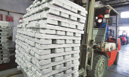 五臺鎂基新材料專業(yè)鎮(zhèn)龍頭企業(yè)云海鎂業(yè)公司成品轉運車間。
