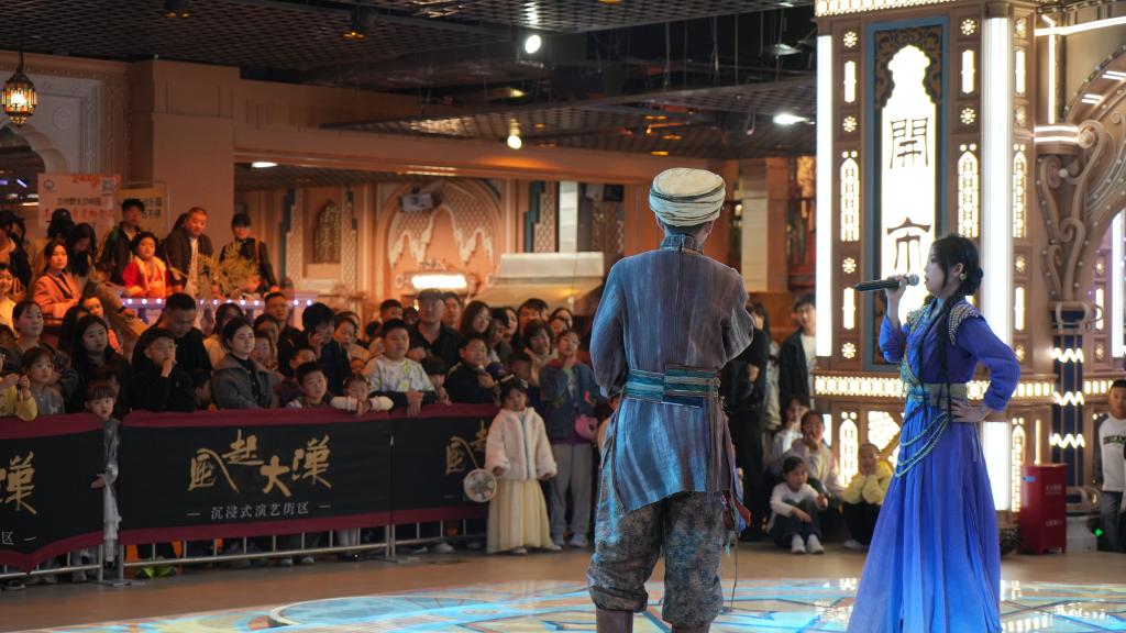 身穿漢代服飾的演員,穿行于充滿古香古色的仿漢代建筑群中,和游客交流互動(dòng)、合影留念,帶領(lǐng)大家沉浸式體驗(yàn)歷史書(shū)上的漢代生活……走進(jìn)位于甘肅省蘭州市七里河區(qū)的蘭州中心地下一層,便進(jìn)入了“風(fēng)起大漢”沉浸式演藝街區(qū)。