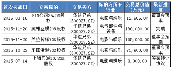 據(jù)悉,華誼品牌授權(quán)與實(shí)景娛樂(lè)三種主要產(chǎn)品形態(tài)包括:華誼兄弟電影小鎮(zhèn)、華誼兄弟電影世界和華誼兄弟文化城。2015年報(bào)告顯示,華誼兄弟品牌授權(quán)與實(shí)景娛樂(lè)板塊累計(jì)簽約項(xiàng)目達(dá) 13個(gè)。該板塊營(yíng)業(yè)收入比上年同期減少了76.25%,王中軍號(hào)稱要做20個(gè)項(xiàng)目,但財(cái)報(bào)上能見(jiàn)到的目前僅有海口觀瀾湖項(xiàng)目和蘇州項(xiàng)目。 Analysys易觀智庫(kù)近期發(fā)布的《2015年中國(guó)電影制發(fā)市場(chǎng)實(shí)力矩陣專(zhuān)題研究報(bào)告》指出,目前國(guó)內(nèi)超半數(shù)的實(shí)景娛樂(lè)項(xiàng)目尚處于虧損狀態(tài),實(shí)景娛樂(lè)產(chǎn)業(yè)鏈尚不算成熟,以優(yōu)質(zhì)內(nèi)容為運(yùn)作核心的實(shí)景娛樂(lè)對(duì)游客的吸引力還有限。據(jù)不完全統(tǒng)計(jì),2012年,中國(guó)立項(xiàng)并通過(guò)審批的影視基地已達(dá)110多座,而這些影視基地中,只有10%左右的影視城可以盈利,20%能持平,剩下的70%都是虧損。 至于華誼兄弟董事長(zhǎng)王忠軍夢(mèng)想的“在中國(guó)擁有自主知識(shí)產(chǎn)權(quán)的主題公園”模式,更是競(jìng)爭(zhēng)激烈。迪士尼主題公園、環(huán)球影城、環(huán)球嘉年華這世界三大娛樂(lè)品牌已全部進(jìn)入中國(guó)市場(chǎng)。預(yù)計(jì)投資295億元的上海迪士尼樂(lè)園已于去年年底完工,即將開(kāi)門(mén)迎客。位于通州區(qū)的北京環(huán)球影城將在下半年開(kāi)工,預(yù)計(jì)2020年完工,投資達(dá)百億元人民幣。此外,美國(guó)六旗計(jì)劃在下一個(gè)10年在中國(guó)開(kāi)設(shè)多個(gè)主題樂(lè)園。更不用說(shuō)國(guó)內(nèi)已經(jīng)進(jìn)入和準(zhǔn)備進(jìn)入的公司。在這樣的市場(chǎng)環(huán)境下,華誼兄弟布局的電影主題公園想實(shí)現(xiàn)盈利并不容易。 互聯(lián)網(wǎng)娛樂(lè)板塊: 布局明星IP 大舉收購(gòu)堪稱豪賭 為何華誼兄弟在電影市場(chǎng)份額大跌的同時(shí)還能保持好看的營(yíng)業(yè)收入?原因就在2015年年末華誼兄弟大肆收購(gòu)的的三家影視公司,其中包括東陽(yáng)浩瀚以及馮小剛的美拉傳媒。這兩家公司2015年由于并表給華誼兄弟帶來(lái)了總計(jì)1.33億的收入以及0.97億的利潤(rùn)。 據(jù)和訊股票報(bào)道,2015年10月22日,華誼兄弟以7.56億元收購(gòu)浙江東陽(yáng)浩瀚影視娛樂(lè)有限公司(以下稱“東陽(yáng)浩瀚”)的藝人股東或藝人經(jīng)紀(jì)管理人合計(jì)持有的70%股權(quán)。主要經(jīng)營(yíng)業(yè)務(wù)包括影視劇項(xiàng)目的投資、制作和發(fā)行,藝人衍生品業(yè)務(wù)的開(kāi)發(fā)和經(jīng)營(yíng),而此次收購(gòu)所涉及的藝人包括李晨、馮紹峰、Angelababy、鄭愷、杜淳、陳赫共6人。 11月19日華誼兄弟又發(fā)布公告,擬以10.5億元收購(gòu)剛剛成立三個(gè)月的東陽(yáng)美拉70%的股權(quán),而東陽(yáng)美拉的注冊(cè)資本為500萬(wàn)元。馮小剛和陸國(guó)強(qiáng)分別轉(zhuǎn)讓旗下69%和1%的股份給華誼兄弟。華誼兄弟將向馮小剛和陸國(guó)強(qiáng)一次性支付全部股權(quán)轉(zhuǎn)讓價(jià)款10.5億元。轉(zhuǎn)讓完成后,華誼兄弟將持有東陽(yáng)美拉70%的股權(quán),馮小剛持有東陽(yáng)美拉30%的股權(quán)。自股權(quán)轉(zhuǎn)讓完成之后,馮小剛需要承諾東陽(yáng)美拉2016年度的業(yè)績(jī)目標(biāo)為經(jīng)審計(jì)的稅后凈利潤(rùn)不低于人民幣1億元。