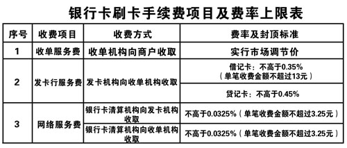 據(jù)了解,銀行卡刷卡手續(xù)費(fèi)主要是發(fā)卡機(jī)構(gòu)收取的發(fā)卡行服務(wù)費(fèi)、銀行卡清算機(jī)構(gòu)收取的網(wǎng)絡(luò)服務(wù)費(fèi)和收單機(jī)構(gòu)收取的收單服務(wù)費(fèi)。根據(jù)新規(guī),發(fā)卡行服務(wù)費(fèi)、網(wǎng)絡(luò)服務(wù)費(fèi)費(fèi)率水平將降低,收單環(huán)節(jié)服務(wù)費(fèi)將實(shí)行市場調(diào)節(jié)價(jià)。