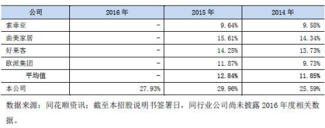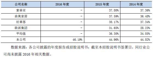 2014至2016年同行業(yè)公司綜合毛利率對(duì)比(來(lái)源:招股書(shū))