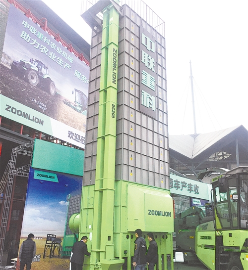 在日前于河南鄭州舉行的2017全國(guó)農(nóng)業(yè)機(jī)械及零部件展覽會(huì)上,中聯(lián)重科展出的烘干機(jī)械吸引了參觀(guān)者駐足。 本報(bào)記者 劉慧攝