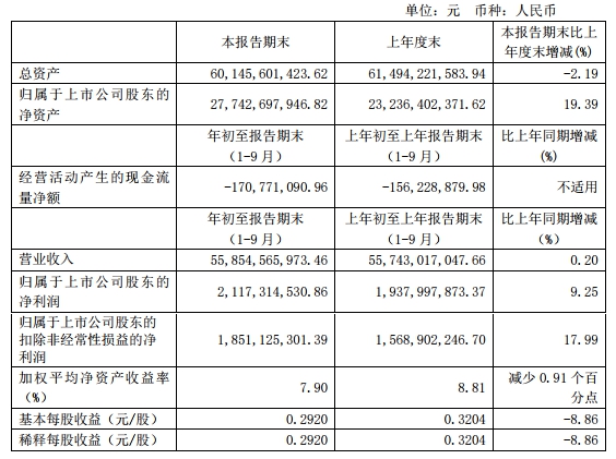 據(jù)三季報(bào),2019年1-9月,中國外運(yùn)實(shí)現(xiàn)營業(yè)收入558.55億元,較上年同期增長0.20%;實(shí)現(xiàn)歸屬于上市公司股東的扣除非經(jīng)常性損益的凈利潤18.51億元,較上年同期增長17.99%;經(jīng)營活動(dòng)產(chǎn)生的現(xiàn)金流量凈額為-1.71億元,上年同期為-1.56億元。