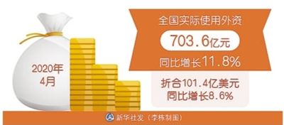 商務(wù)部:4月全國(guó)實(shí)際使用外資703.6億元 同比增長(zhǎng)11.8%