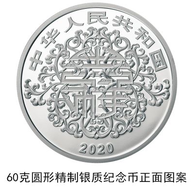 60克圓形銀質(zhì)紀念幣為精制幣,含純銀60克,直徑40毫米,面額20元,成色99.9%,最大發(fā)行量20000枚。