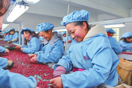 既抓良種繁育,又抓綠色種植技術(shù)推廣。今年,岢嵐縣以“龍頭企業(yè)+鎮(zhèn)村”的模式,建設(shè)4個(gè)綠色種植基地共計(jì)5830畝,讓加工銷售企業(yè)的綠色理念直達(dá)農(nóng)戶,讓技術(shù)要求和品種選用落實(shí)到地頭,帶動(dòng)全縣建成紅蕓豆標(biāo)準(zhǔn)化生產(chǎn)基地8.4萬畝。紅蕓豆出口商煒嵐工貿(mào)有限公司生產(chǎn)經(jīng)理劉永旺說:“今年市場需求旺盛,價(jià)格一路走高,從我們掌握的信息來看,大多數(shù)農(nóng)戶在每斤6元的時(shí)候出售。全縣農(nóng)民銷售紅蕓豆一項(xiàng)就在1.5億元以上,發(fā)展紅蕓豆產(chǎn)業(yè)經(jīng)濟(jì)效益十分可觀。”