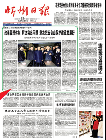 2015年4月2日,世界文化景觀五臺(tái)山作為5A景區(qū)被國(guó)家旅游局警告,9月14日又被央視“焦點(diǎn)訪談”曝光。9月21日至23日,省委書記王儒林深入五臺(tái)山就傳承弘揚(yáng)優(yōu)秀傳統(tǒng)文化、景區(qū)建設(shè)管理、文化旅游產(chǎn)業(yè)發(fā)展、宗教政策落實(shí)等進(jìn)行調(diào)研。他強(qiáng)調(diào),要高度重視五臺(tái)山保護(hù)建設(shè)發(fā)展,改革體制機(jī)制,創(chuàng)新管理理念,解決突出問題,切實(shí)提高景區(qū)管理服務(wù)水平,傳承弘揚(yáng)發(fā)展五臺(tái)山悠久的佛教文化、優(yōu)秀的歷史文化,帶動(dòng)全省文化旅游產(chǎn)業(yè)做大做強(qiáng)。