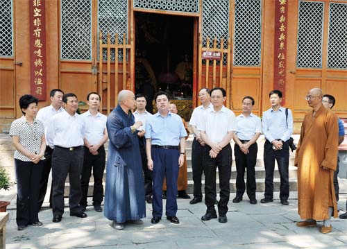 中央統(tǒng)一戰(zhàn)線工作領導小組一行在五臺山顯通寺調研檢查宗教工作。劉紀森 攝