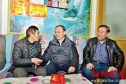 在看望1926年出生、1948年入黨的忻府區(qū)西張鄉(xiāng)東張村老黨員張根明時(shí),李俊明說,老黨員曾為革命、建設(shè)和改革事業(yè)貢獻(xiàn)過青春、奉獻(xiàn)過力量,是黨和國家的寶貴財(cái)富,黨和人民不會(huì)忘記你們,市委始終牽掛著你們。全市各級(jí)一定要特別關(guān)注,千方百計(jì)地幫助老同志解決實(shí)際困難和問題,讓老同志時(shí)刻感受到黨和政府的關(guān)心與關(guān)懷。黨員退伍軍人李貴明在部隊(duì)期間戰(zhàn)績顯著,曾榮立二等功一次、兩次受到嘉獎(jiǎng)。1996年下崗后,李貴明自費(fèi)學(xué)習(xí)廚藝謀出路,從未向政府提任何要求。李俊明了解其參軍復(fù)員及家庭子女情況后,對(duì)他在各種情況下都能充分發(fā)揮共產(chǎn)黨員的先鋒模范作用表示贊賞。要求政府部門全力服務(wù)好退伍軍人,勉勵(lì)李貴明在政府的幫助下繼續(xù)奮斗,不忘初心,發(fā)揚(yáng)革命傳統(tǒng),在新時(shí)代三大攻堅(jiān)戰(zhàn)中再立新功。在慰問六級(jí)殘疾軍人張玉根、建檔立卡貧困戶李成緒和特困職工左衛(wèi)忠時(shí),李俊明將米面油、對(duì)聯(lián)等慰問品送到他們家中,送上黨和政府的親切關(guān)懷和新春祝福。他仔細(xì)了解他們的家庭困難原因和就業(yè)收入情況,勉勵(lì)他們堅(jiān)定信心,在黨委、政府以及社會(huì)各界的幫助下,努力克服困難,樂觀面對(duì)生活,過上幸福生活。他要求全市各級(jí)各部門一定要高度關(guān)注民生,關(guān)心困難群眾的生產(chǎn)生活狀況,及時(shí)幫助解決困難,讓他們充分感受到黨和政府及社會(huì)主義大家庭的關(guān)愛。