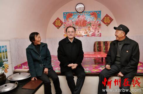 圖為省人大常委會(huì)副主任、市委書記李俊明在偏關(guān)縣新關(guān)鎮(zhèn)高家上石會(huì)村貧困戶高長后家,聽說去年收入六萬元,高興地鼓勵(lì)他今年再大干增收。本報(bào)記者劉紀(jì)森攝