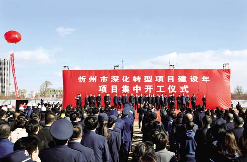 圖為忻州市深化轉(zhuǎn)型項(xiàng)目建設(shè)年項(xiàng)目集中開(kāi)工儀式現(xiàn)場(chǎng)。本報(bào)記者 劉紀(jì)森 攝