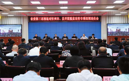 圖為省委第三巡視組對忻州市、縣開展脫貧攻堅專項巡視動員會會場。本報記者 劉紀(jì)森 攝
