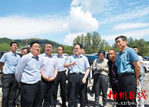 圖為省人大常委會副主任、市委書記李俊明在五臺山風景名勝區(qū)金界寺村調(diào)研特色風貌整治情況。