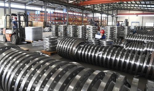 傳統(tǒng)產(chǎn)業(yè)改造提升是我市轉(zhuǎn)型升級(jí)的重要內(nèi)容。定襄縣整合提升法蘭鍛造產(chǎn)業(yè),建成特色產(chǎn)業(yè)集聚區(qū),成為我省首批特色產(chǎn)業(yè)集聚區(qū)試點(diǎn)。圖為冠力法蘭公司生產(chǎn)車間一角。張晉蘭攝