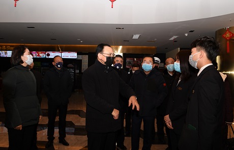 省人大常委會副主任、市委書記李俊明在開萊橫店影城檢查娛樂場所暫停營業(yè)執(zhí)行情況 本報記者 劉紀森 攝