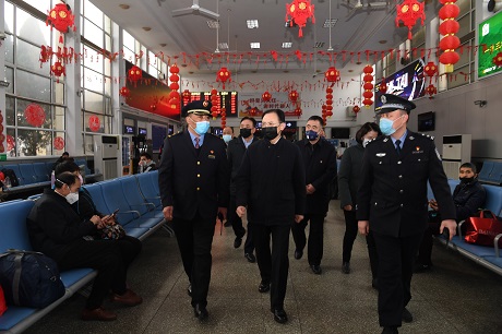 省人大常委會副主任、市委書記李俊明在火車站檢查督導疫情防控措施準備情況 本報記者 劉紀森 攝