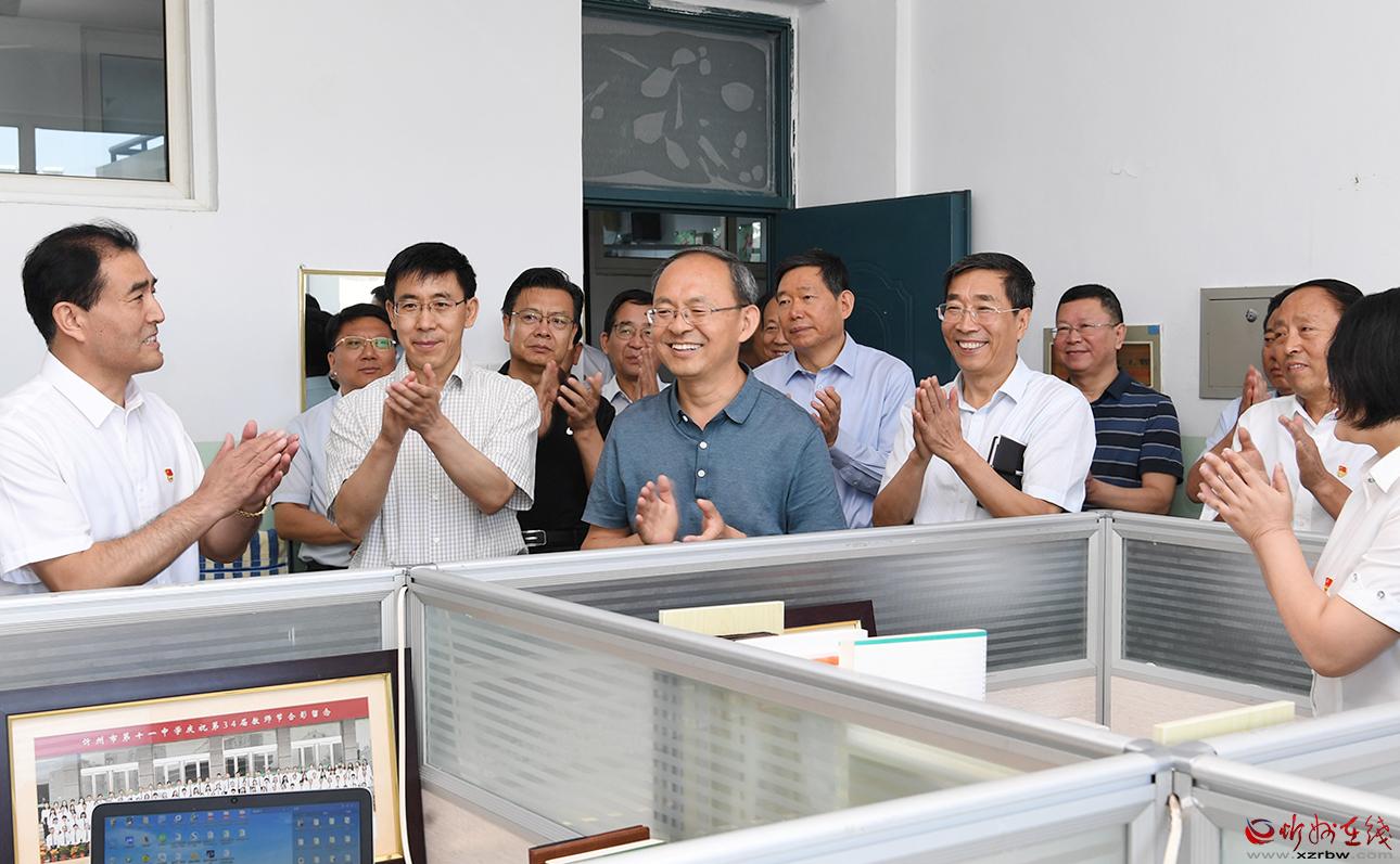 近年來,忻州一中優(yōu)生培養(yǎng)取得階段性成果,綜合辦學(xué)水平大幅提升,高考一本達(dá)線率連年在85%以上,二本達(dá)線率逼近百分之百,教育質(zhì)量享譽三晉,教學(xué)成績位列全省第一方陣,這些都離不開該校全體教師的辛勤付出。鄭連生一行詳細(xì)察看了校園環(huán)境,并到數(shù)學(xué)教研室與教師進(jìn)行交流,聽取教育教學(xué)意見,詢問工作生活上的困難。鄭連生指出,百年大計,教育為本;教育大計,教師為本,教師是教育事業(yè)發(fā)展的基礎(chǔ),要高度重視并切實抓好教師隊伍建設(shè),不斷提升教師的教學(xué)水平,為教師的工作和生活創(chuàng)造便利條件。各級各部門要始終堅持教育優(yōu)先發(fā)展戰(zhàn)略,加大財政投入,加強(qiáng)政策支持,全面優(yōu)化教育發(fā)展環(huán)境,推動忻州教育水平再上新臺階,為我市經(jīng)濟(jì)社會發(fā)展培養(yǎng)更多人才。