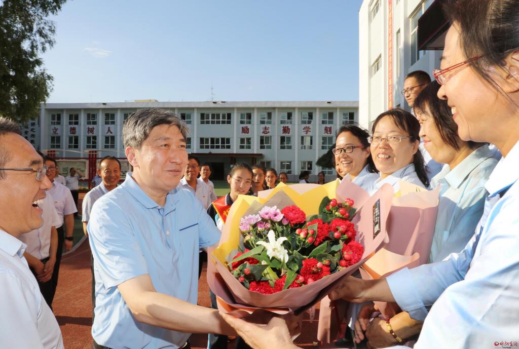 朱曉東在慰問時強(qiáng)調(diào),教師崗位光榮、使命重大,是決定學(xué)校辦學(xué)質(zhì)量的關(guān)鍵。忻州教育事業(yè)一年一個新臺階、一年一個新變化,與廣大教師的努力付出、辛勤工作息息相關(guān)。教師的工作是為地方、為社會、為國家打基礎(chǔ)、立長遠(yuǎn)的戰(zhàn)略性工作,各級各部門要堅決貫徹落實黨的教育方針,尊重教師、呵護(hù)教師、全力保障教師。教師要全面落實立德樹人根本任務(wù),尊重教育規(guī)律和人才成長規(guī)律,把社會主義核心價值觀融入教育全過程,促進(jìn)孩子們健康快樂地成長。要讓孩子們包括文化知識在內(nèi)全面發(fā)展,像澆灌苗木一樣不斷培養(yǎng)塑造學(xué)生的心靈,讓孩子們有愛心,愛家人、愛社會、愛祖國,讓孩子們在知識儲備、心理健康、寬廣胸懷、廣闊視野上打好基礎(chǔ),讓忻州的學(xué)子在步入社會后,個個綜合素質(zhì)優(yōu)越,潛力長遠(yuǎn)、底蘊深厚,成為一個個為社會作貢獻(xiàn)的人才。希望廣大教師根據(jù)自身實踐,結(jié)合忻州實際,在教學(xué)、教育方面提出好的意見和建議,大家凝聚智慧,共同努力把忻州的教育質(zhì)量、教育事業(yè)辦得更加讓人民滿意,更加出彩。