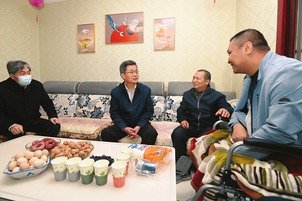 4月21日下午,省委書記藍(lán)佛安來到忻州市定襄縣晉昌鎮(zhèn)北城社區(qū),了解脫貧群眾郝生偉、郝華君父子二人的身體、生活狀況和享受救助政策情況。本報(bào)記者史曉波攝