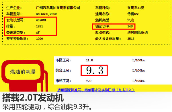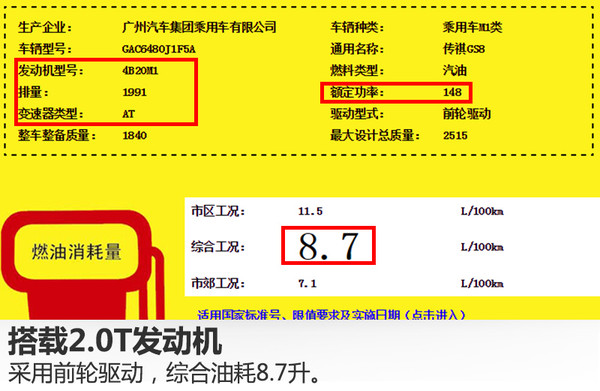 動(dòng)力方面,從國(guó)家工信部公布的信息可知,廣汽傳祺GS8將搭載一臺(tái)型號(hào)為4B20M1的2.0升直列四缸渦輪增壓發(fā)動(dòng)機(jī),額定功率148千瓦,匹配6速自動(dòng)變速箱。百公里綜合油耗分別為:兩驅(qū)車型8.7升,四驅(qū)車型9.3升。