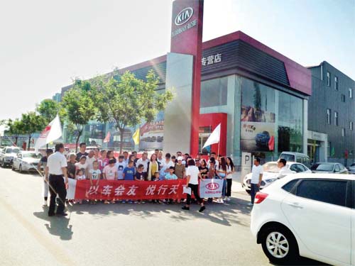 活動當天天氣晴朗,店內(nèi)工作人員從早上7點半開始就陸續(xù)到店進行準備工作,8點開始車友們陸續(xù)到店,將車順序停好后便有條不紊地進行報名和簽協(xié)議工作,維修技師忙著檢查車輛,銷售顧問忙著粘貼車貼、會徽和車號牌。到8點30分的時候,車友報到工作順利就緒,接著車友會工作人員又進行了車輛安全知識和路途注意事項的提醒與活動行程的安排,然后全體車友會成員和工作人員一起合影留念。9點半以后23輛起亞車帶著東風悅達起亞的文化和祝福,浩浩蕩蕩出發(fā)了,行程中車隊引來了路人的圍觀與矚目。