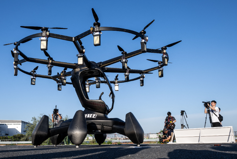 5月17日,人們在日本東京拍攝“飛行汽車”Hexa。新華社/法新