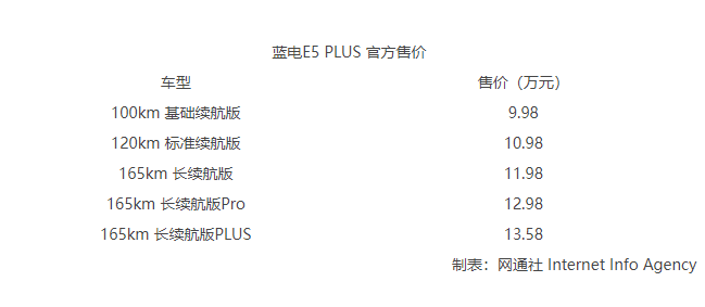 10月17日,藍(lán)電E5PLUS正式上市,新車共推出5款車型,售價(jià)區(qū)間為9.98萬-13.58萬元。新車定位中型插混SUV,并采用7座、5座兩種座椅布局可選,滿足家庭出行多場景需求。此外,新車入門車型純電續(xù)航達(dá)到了100km,以及165km同級最長純電續(xù)航和1300km綜合續(xù)航。