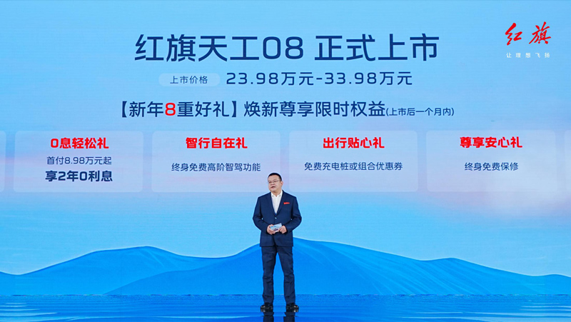 “旗創(chuàng)新高,天工逐耀”,1月7日,在長(zhǎng)春一汽研發(fā)創(chuàng)新基地舉行的“燃動(dòng)冰雪,見(jiàn)證‘相信’——紅旗天工08產(chǎn)品上市發(fā)布會(huì)”上,紅旗智造中大型豪華純電SUV天工08正式上市,以領(lǐng)先技術(shù)和卓越實(shí)力為用戶提供高品質(zhì)出行新選擇。回望2024年,一汽紅旗銷量突破40萬(wàn)輛,以強(qiáng)勁增勢(shì)再攀歷史高峰。站在40萬(wàn)銷量新起點(diǎn),天工08將以進(jìn)取之姿為2025年新征程踏出堅(jiān)實(shí)首步。