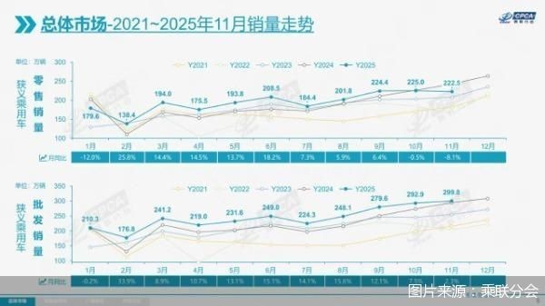 車市正進入平穩(wěn)發(fā)展階段。12月8日,中國汽車流通協會乘用車市場信息聯席分會(以下簡稱“乘聯分會”)發(fā)布的數據顯示,2025年前11個月零售2148.3萬輛,整體保持增長。不過,今年11月車市零售量同比、環(huán)比均出現下滑?!?1月乘用車市場銷量環(huán)比出現下降,是比較少見的?!背寺摲謺貢L崔東樹認為,今年上半年,我國乘用車市場銷量實現較快增長,下半年車市增長需回到合理、穩(wěn)定的狀態(tài)。車市進入平穩(wěn)期有利于市場長期穩(wěn)定發(fā)展,預計今年零售將增長5%。