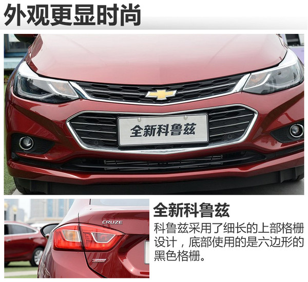 外觀方面,科魯茲采用細長的上部格柵設計,底部使用的是六邊形的黑色格柵。側面來看新車緊湊有力,雙腰線設計線條比較復雜,花瓣式輪圈也很時尚。新車尾部線條比較豐富,很有棱角,牌照區(qū)域也采用六邊形設計,后尾燈組內部結構采用雙環(huán)形分離式尾燈,與邁銳寶XL設計風格一致。