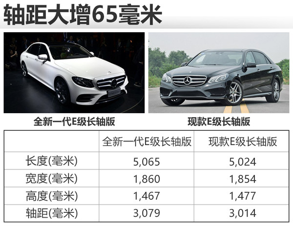 尺寸方面,奔馳全新一代E級的標準軸距版在長度和軸距方面較之現(xiàn)款大幅增加,專為中國研發(fā)的長軸版本尺寸比現(xiàn)款有所增加,新車長寬高分別為5,065*1,860*1,467毫米,軸距為3,079毫米,與現(xiàn)款E級相比車身長度增加41毫米,寬度增加6毫米,軸距長度更是增加65毫米。(圖/文 網(wǎng)通社 郭王虎)