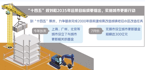 房企參與城市更新有望獲得更多支持?!笆奈濉币?guī)劃和2035年遠景目標(biāo)綱要明確提出,實施城市更新行動。老舊小區(qū)改造是城市更新的重要內(nèi)容之一,我國提出,到“十四五”期末,結(jié)合各地實際,力爭基本完成2000年底前建成需改造城鎮(zhèn)老舊小區(qū)改造任務(wù)。住房和城鄉(xiāng)建設(shè)部有關(guān)負責(zé)人曾表示,鼓勵房地產(chǎn)開發(fā)企業(yè)參與老舊小區(qū)改造。今年以來,多省市密集出臺相關(guān)舉措推進城市更新。除上海設(shè)立了城市更新基金以外,據(jù)報道,7月份無錫市也設(shè)立了城市更新基金,基金規(guī)模達300億元,專項用于投資無錫舊城區(qū)改造和城市更新項目規(guī)劃、建設(shè)、開發(fā)及運營等。此外,廣州、北京等城市也設(shè)立了與城市更新相關(guān)的基金。