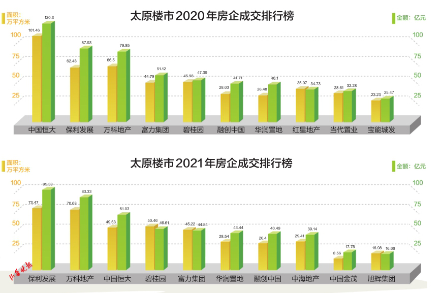 從本次入榜企業(yè)來(lái)看,2021年太原房地產(chǎn)開(kāi)發(fā)企業(yè)前三位易主,不論是成交金額、成交面積還是企業(yè)排名,與2020年相比,太原樓市都發(fā)生了巨大變化。