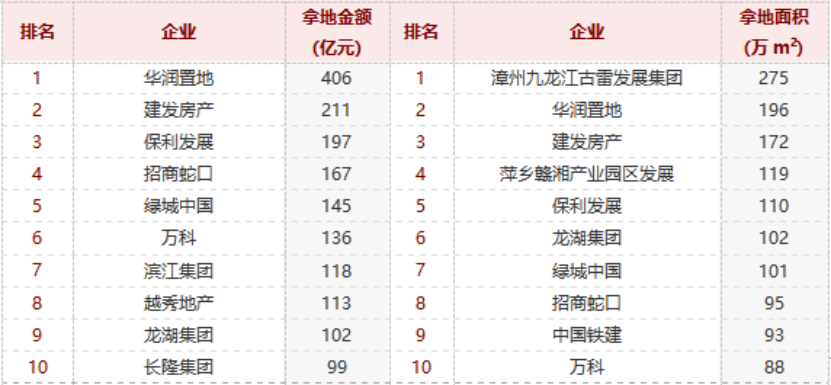根據(jù)中指研究院發(fā)布的榜單可以看出,央國企銷售表現(xiàn)仍較為突出,1-5月,部分央國企銷售額增長超過50%,如中海、華潤、招商、建發(fā)、華發(fā)、中國鐵建等;還有企業(yè)增長超過100%,如越秀地產(chǎn)、保利置業(yè)、廈門國貿(mào)等。另外,民企銷售增長較高的有濱江、龍湖、卓越、美的置業(yè)等。在銷售額增長的同時(shí),這些企業(yè)在土地市場依然“活躍”。