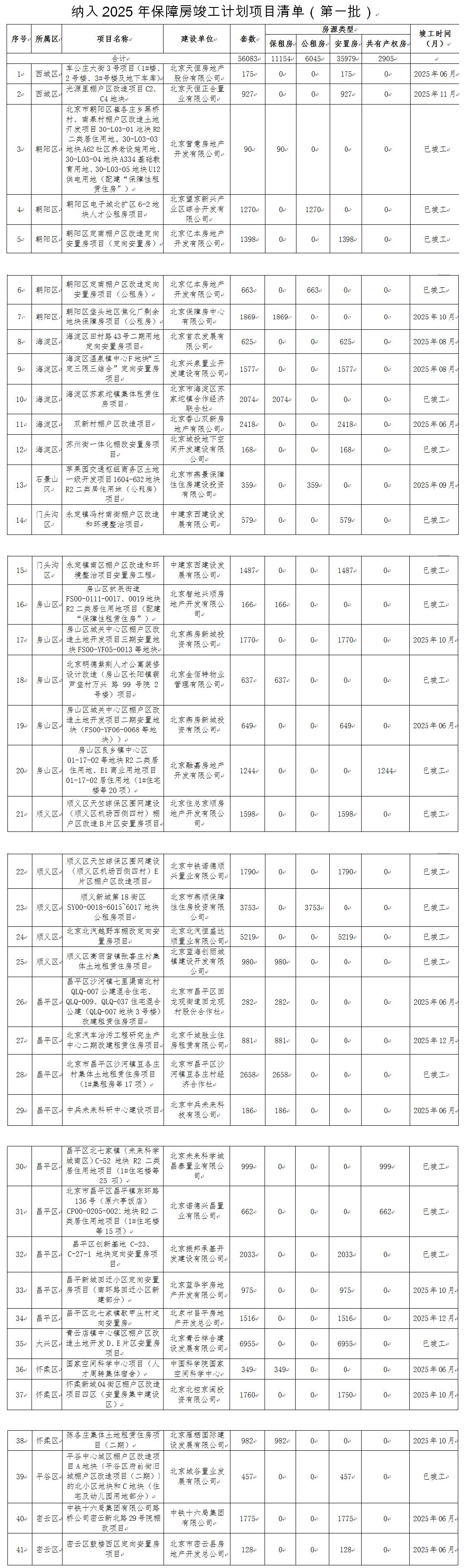 (2025年保障房竣工計(jì)劃項(xiàng)目清單(第一批),圖源:北京市住建委)