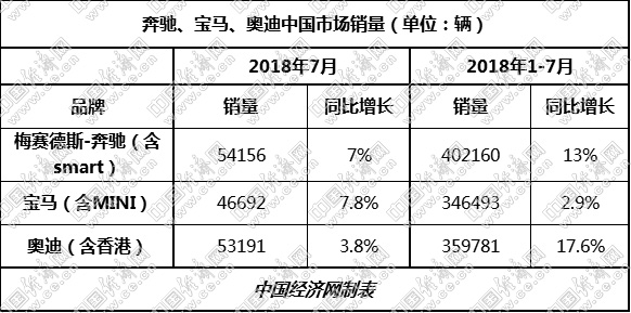 就數(shù)據(jù)而言,ABB三家無(wú)論是7月當(dāng)月還是前7月,均保持著正向增長(zhǎng)。其中,奔馳、寶馬給出的定義是“穩(wěn)健”、“平穩(wěn)”增長(zhǎng),奧迪則是收獲了“在華最好7月”。在競(jìng)爭(zhēng)格局上,三家品牌也并未有大的變化,依舊維持著年初以來(lái)的座次:奔馳繼續(xù)保持領(lǐng)先,奧迪加速追趕,寶馬則是按照既定目標(biāo)一路向前。
