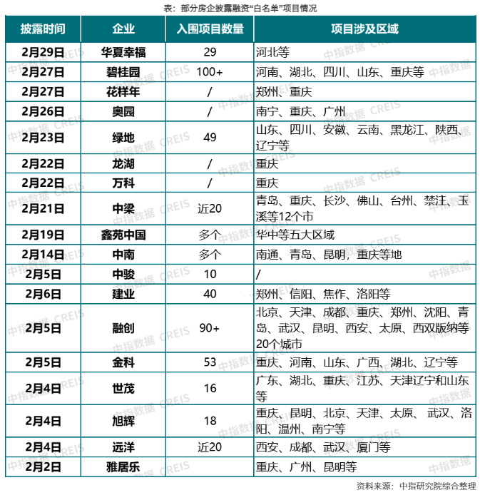 根據(jù)中指研究院監(jiān)測(cè),城市房地產(chǎn)融資協(xié)調(diào)機(jī)制建立以來(lái),鄭州、成都、重慶、昆明等城市上報(bào)項(xiàng)目數(shù)量均超200個(gè),部分出險(xiǎn)房企也有多個(gè)項(xiàng)目進(jìn)入白名單,在“推送-反饋”工作閉環(huán)下,出險(xiǎn)房企的項(xiàng)目獲得融資支持的機(jī)會(huì)也有望增加,有利于進(jìn)一步穩(wěn)定市場(chǎng)預(yù)期。