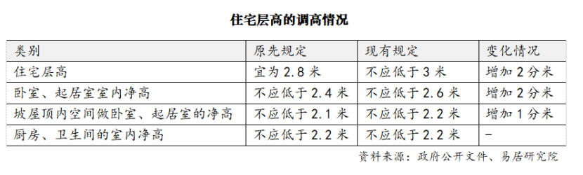 住宅層高標準提升是此次《住宅項目規(guī)范》修訂的重要指標之一。根據(jù)最新規(guī)范,住宅層高由現(xiàn)行版本規(guī)定的宜為2.8米提升至不低于3.0米,臥室/起居室凈高由不低于2.4米提升至不低于2.6米。